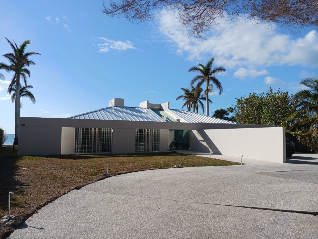 The former Baker Residence, recognized as one of the most architecturally significant homes in Sarasota, showcases the visionary work of award-winning architect Michael Shepherd. Since its reimagining in 1992, the estate has embraced an open-concept floor plan that seamlessly integrates indoor living with the natural beauty outside. Step through the all-glass foyer, bypass the sleek privacy wall, and be greeted by breathtaking vistas that extend as far as the eye can see. Floor-to-ceiling windows invite an abundance of natural light into the space, ensuring that the stunning surroundings become an ever-present backdrop.